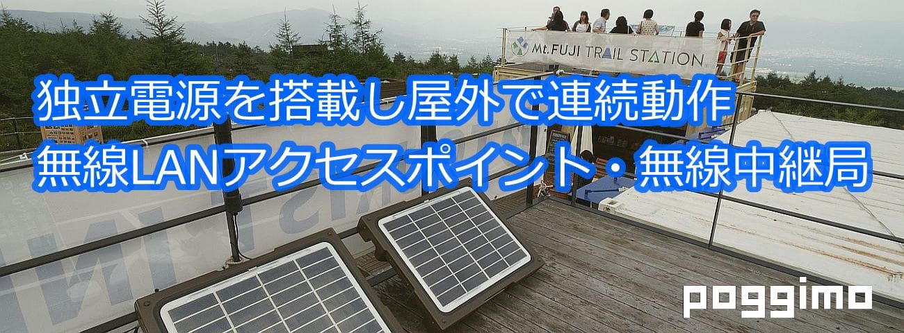 ポジモ(poggimo)は自律電源一体型の無線LANアクセスポイント兼中継器です。太陽光発電パネルで発電して蓄電する為、電源工事が不要だから。